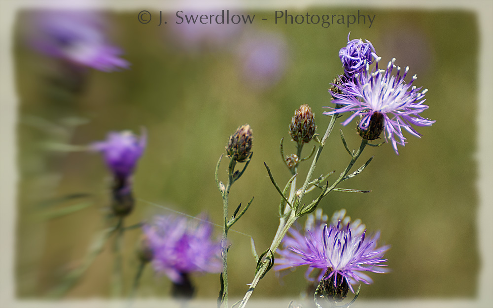 Caught these guys on Sunday morning while taking a stroll on the Hamilton Bike Path. It was a very hot day so I was not walking too fast. I had the 70 - 300 lens on the camera and set up the shot hand held with the vibration reduction on. Again worked it for minimum DOF. Notice the little strand of a spider web, centre lft, almost at the bottom. Thought I would go a bit funky with the frame from OnOne software. (July 2011)