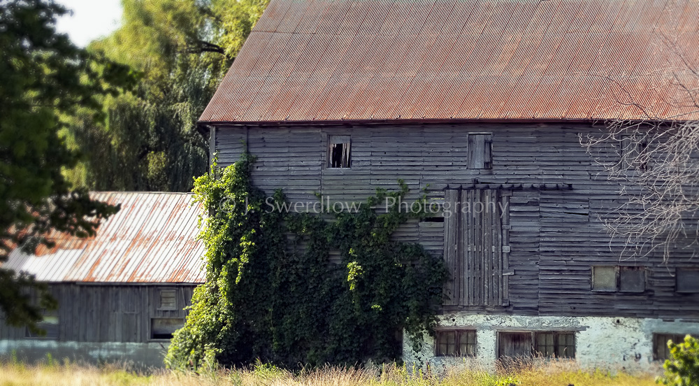 Continuing on my drive, I spotted another barn. This one had an interesting pattern to the door and the contrast of the Ivy growing on the side as well as a dead tree in front. This is about half of the visible frame. Again using the 70 - 300mm at about 135mm. A bit of touch up with the OnOne software helps make this photo crisp and sharpe. (August 2011)