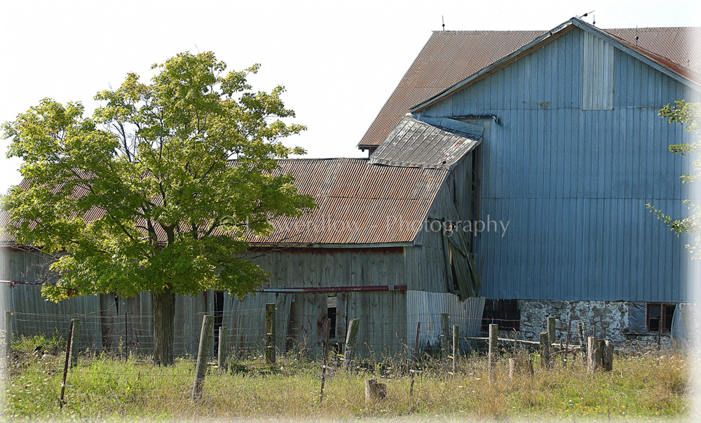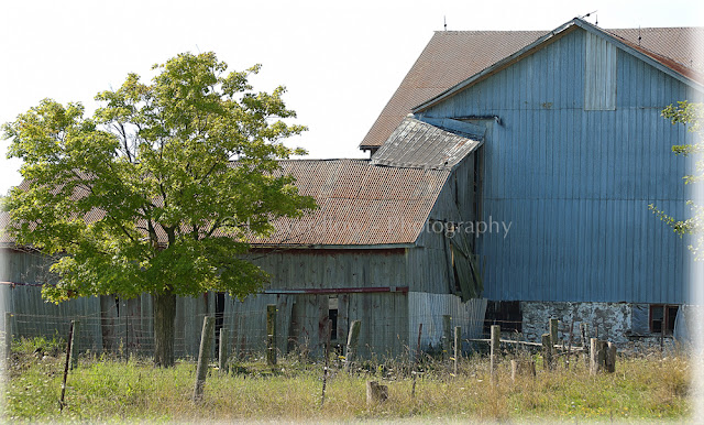 I cannot remember ever seeing a "blue" barn. Green, Red, Weathered Wood....YES. Never Blue. So here is one. This is the last barn from my drive of a few days ago. It makes for an interesting shot....the sky was very bright and I could not bring out the blue of the sky.....Maybe, I will try some PhotoShop magic and insert a cloudy sky. But that wouldn't be right....would it..?? (aug 2011)