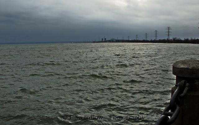 New Years Day, 2012. For the last number of years I have tried to get out to capture shots on January 1st. Today was no different. It was warm, but very windy and cloudy. There was some rain, but not much. I was hoping that the direction of the wind would be off of the lake so that there would be a spectacular display of breaking waves up against the break water. But the winds had not shifted to the south yet. However, there was some chop on the water, and I got some drops of rain on the lens because of the winds. Photoshop took care of those. A bit of OnOne's Photo Tools to give some contrast and depth to the shot and we have a dark lake capture. (January 2012)