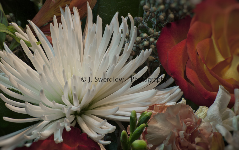 A friend gave me a flower arrangement that was left over from a recent event. I loved the colours and the variety of flowers. So here they are for you to enjoy as well. Shot with my 60mm, close up and personal. I have no idea of the names of these flowers. (March 2012)